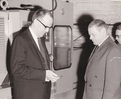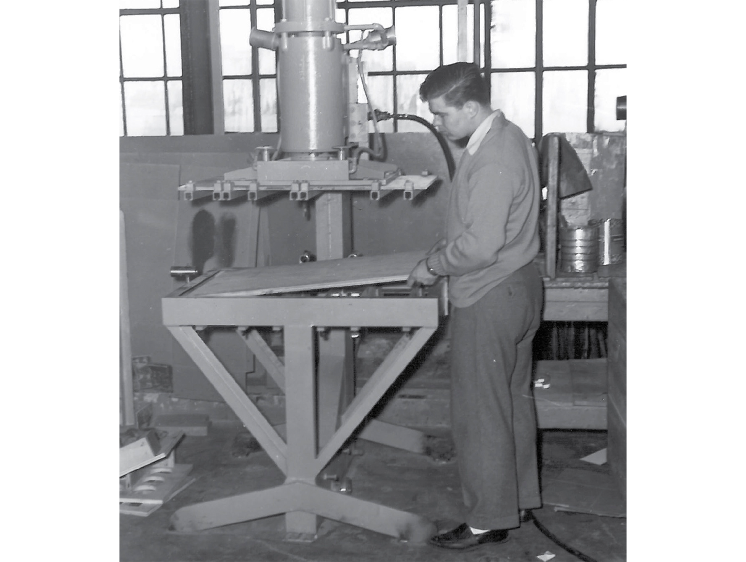 A corrugated cardboard assembler reached out with a request for a machine to punch out die-cuts in cardboard, saving hours of difficult manual labor. Hugh and chief engineer Jim Hanks drew up designs for a large air presser they named the Power Stripper. It was an instant success.