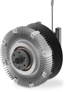 Alternating between eddy-current and spring-actuated cooling to moderate operating noise and increase available horsepower for auxiliary systems. Typical engine horsepower range: Up to 447 kW [600 HP]