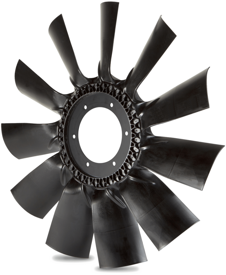 Using 11 innovative computer optimized blades for minimized deflection and reduced fan stress, this lightweight fan optimizes airflow and efficiency in a wide range of on- and off-highway applications.