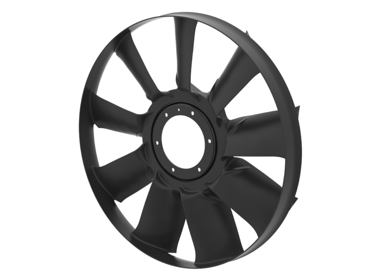 The distinctive ringed design reduces cooling fan tip turbulence. Enclosing the fan blade circumference enhances engine cooling, and results in quieter operation. Manufactured from fiberglass-reinforced, heat-stabilized plastic materials, RS Molded Ring Fans retain their strength even at high operating temperatures.