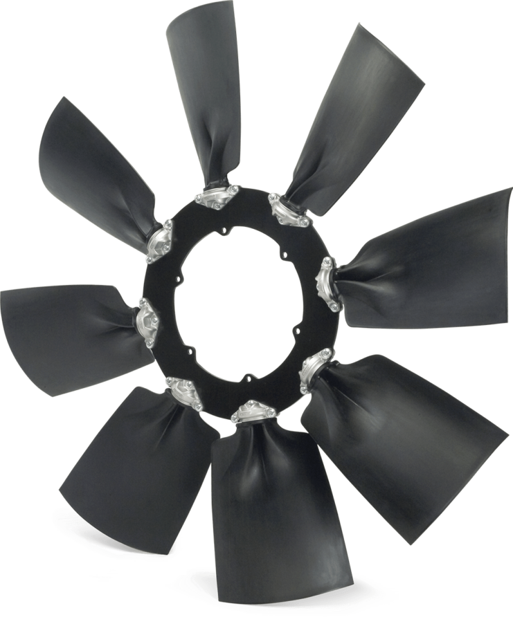 WindShift™ Modular Fans offer greater flexibility in design and manufacturing for optimal performance plus faster, easier testing and prototyping for your engine cooling needs. The fans are constructed with innovative clamshell knuckles that clamp each blade to the steel-center disk. This allows blades to be set to a specific pitch angle. These fans feature a selection of computer-optimized blade designs for maximum efficiency and advanced engine cooling. WindShift fans are available in a variety of blade configurations, rotation options, and center-disk diameters.